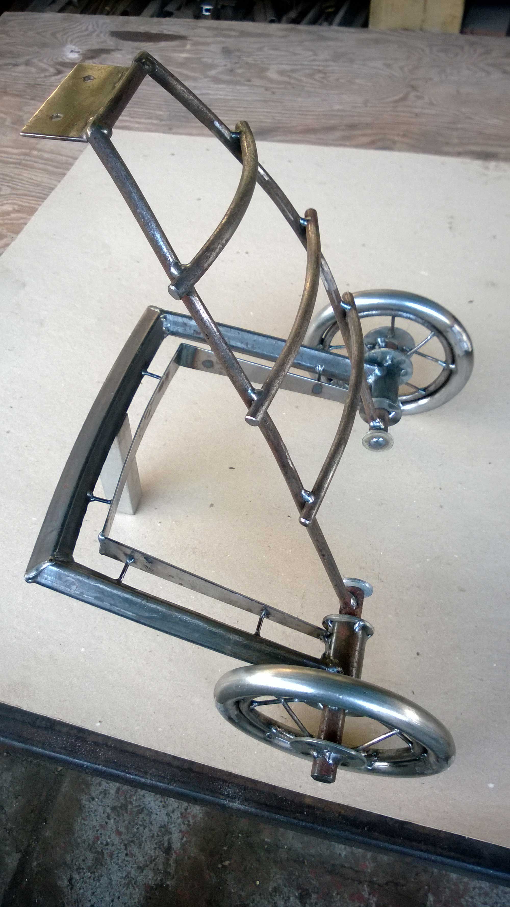 Oczekiwania klienta wiązały się z uzyskaniem konstrukcji metalowej zbliżonej wyglądem do rowerku. Rowerki te, jako mały ale istotny element całego ekspozytora, miały być wykonane w sposób siermiężny np. z widocznymi przebarwieniami po spawach.