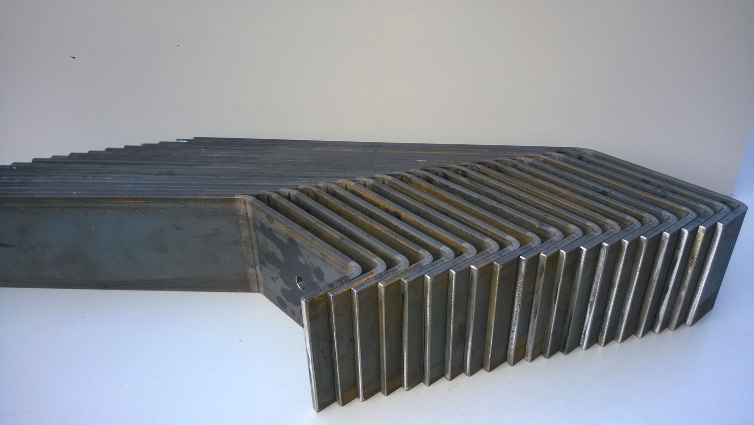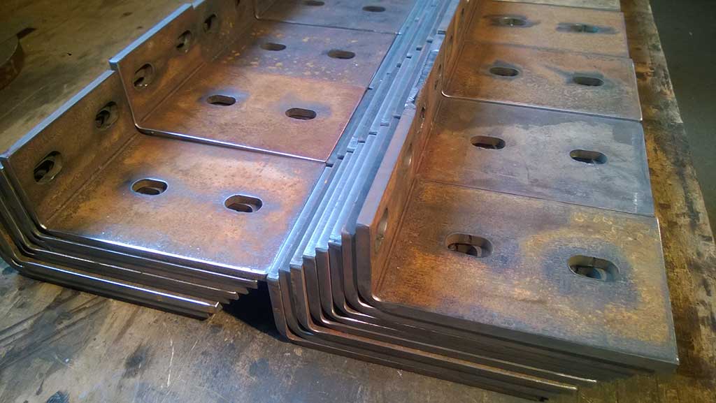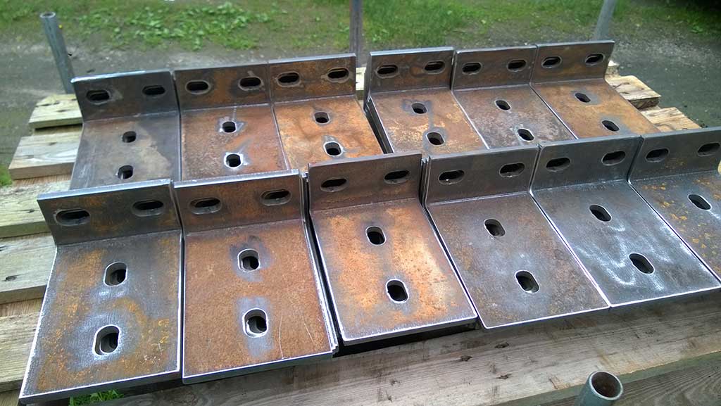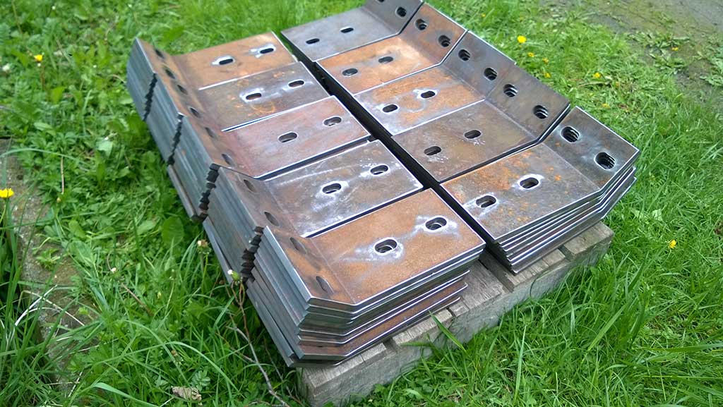 Gięcie płaskowników – wykonanie elementów mocowania konstrukcji balkonów – blacha grubości 10mm.