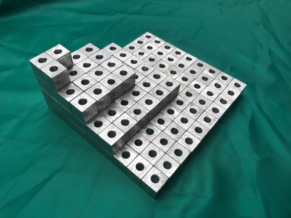 Aluminiowe kostki dystansowe z osiowym otworem fi 6.