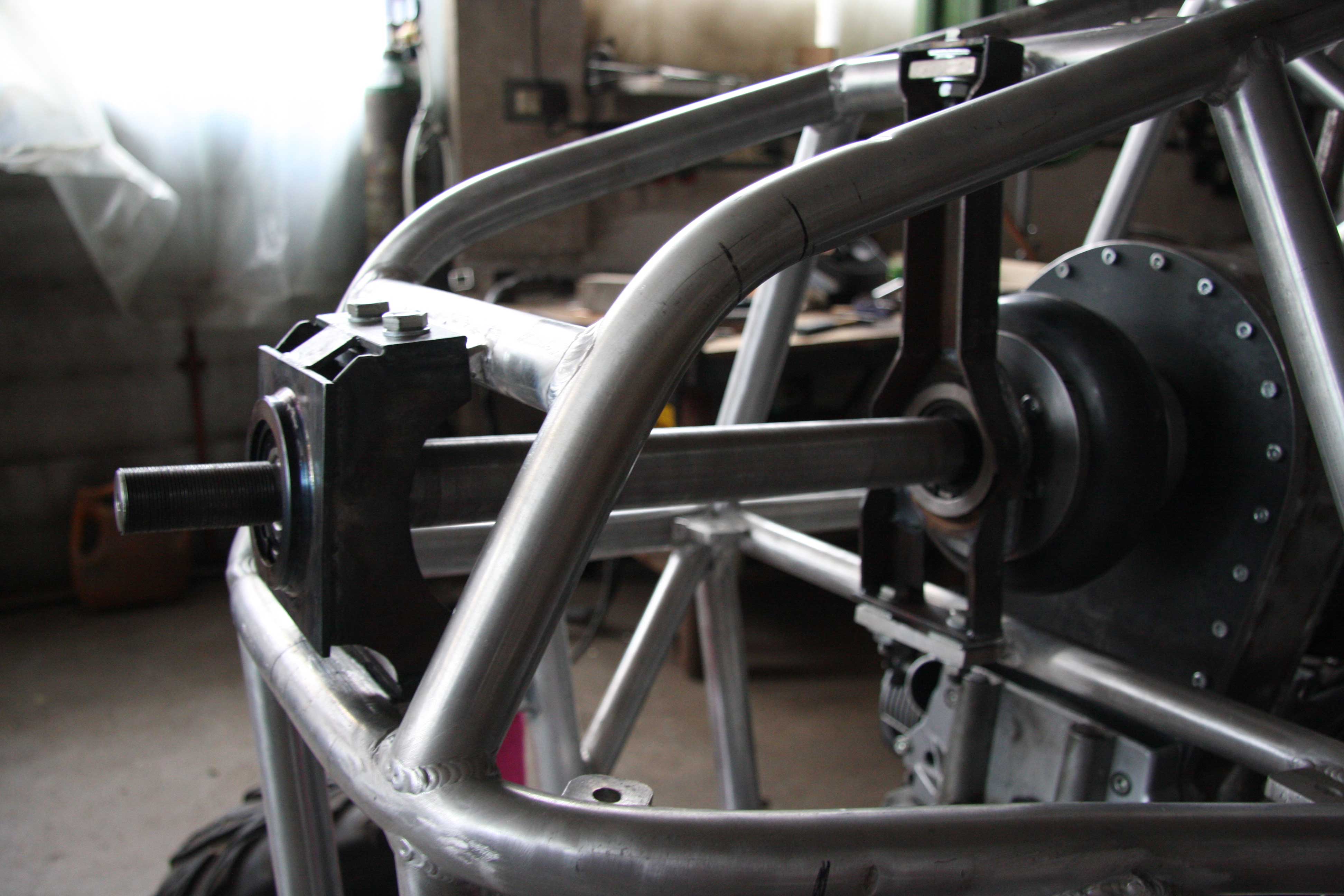 Przekładnia przeniesienia napędu z motocyklowego silnika BMW 1100 na śmigło pchające, służąca do napędu prototypowego skybuggy.