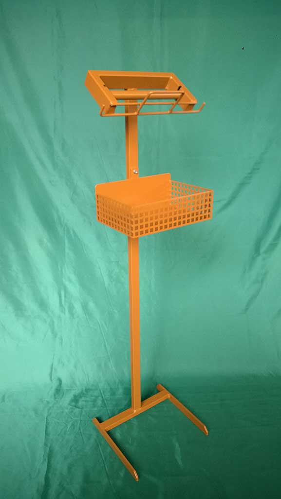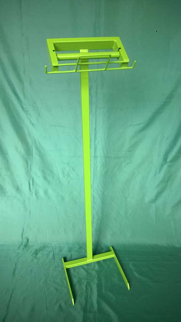 Wykonane zostały w sposób utrudniający klientom wyciąganie całych rolek z foliami. Dzięki takiemu rozwiązaniu na koniec dnia nie trzeba zbierać porozrzucanych rolek. Stojaki dodatkowo wyposażono w hak na zawieszenie foliowych rękawiczek oraz w półkę na papierowe torebki. Wykonane są w całości z metalu malowanego proszkowo.